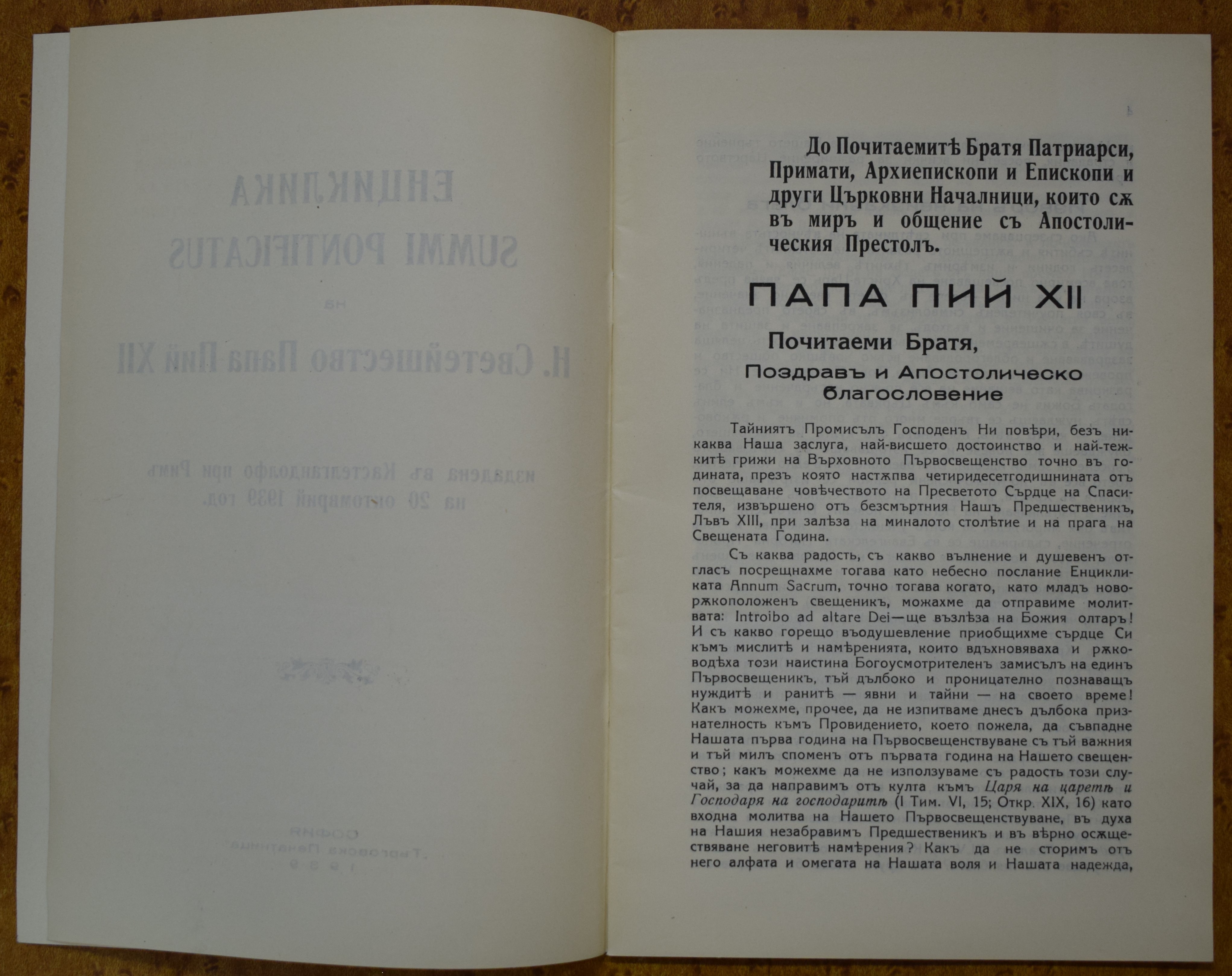 Енциклика : Summi pontificatus / На Негово Светейшество папа Пий XII. - Рим : Кастенгандолфо при Рим, 1939 (Търговска печатница). - 35; 25 см, 8°