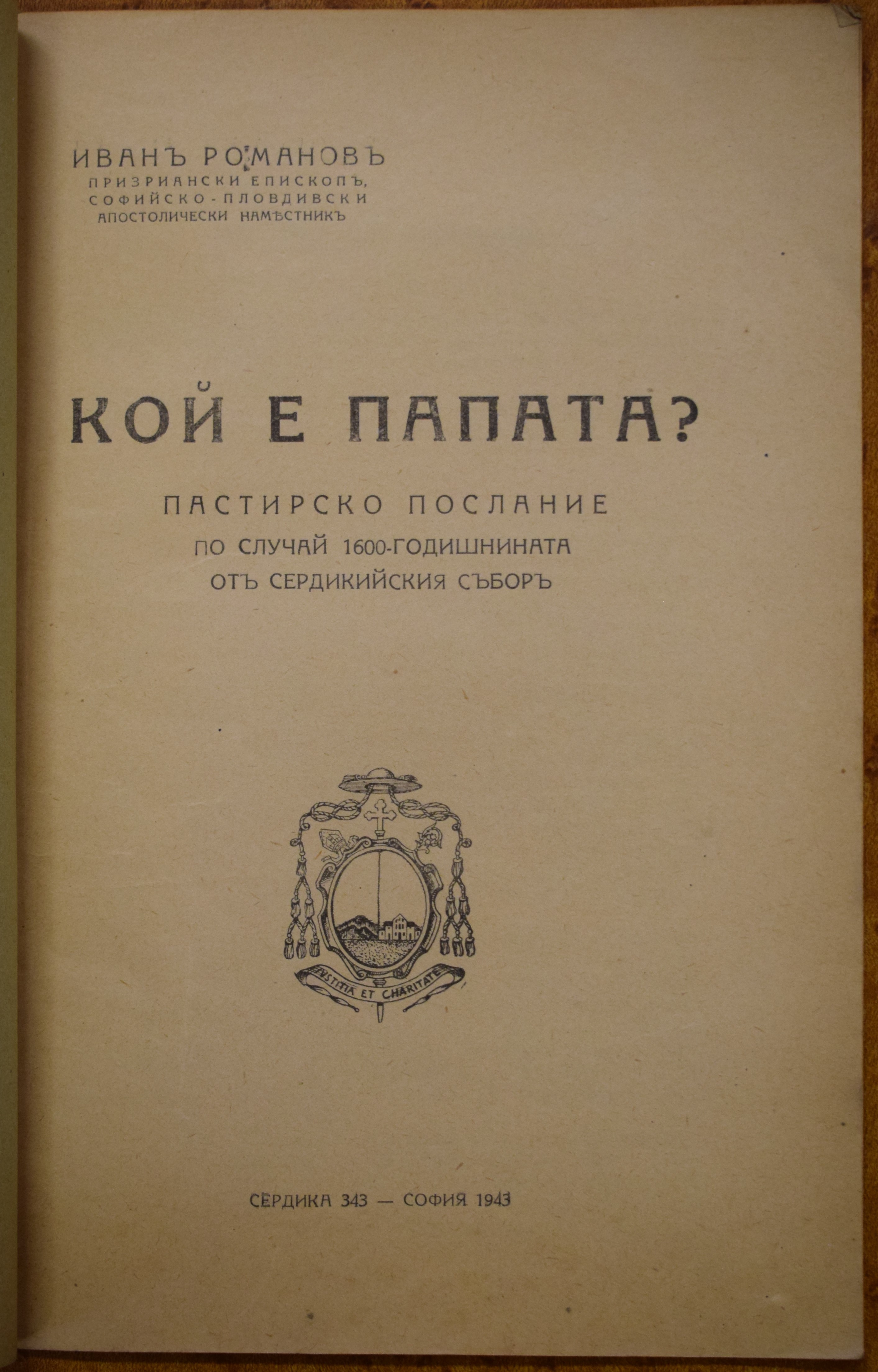 Кой е папата? Пастирско послание по случай 1600-годишнината от Сердикийския събор. / Иван Романов. - София : Сердика 343, 1943 (Гутенберг). - 22, [2] с.; 26 см, 8°