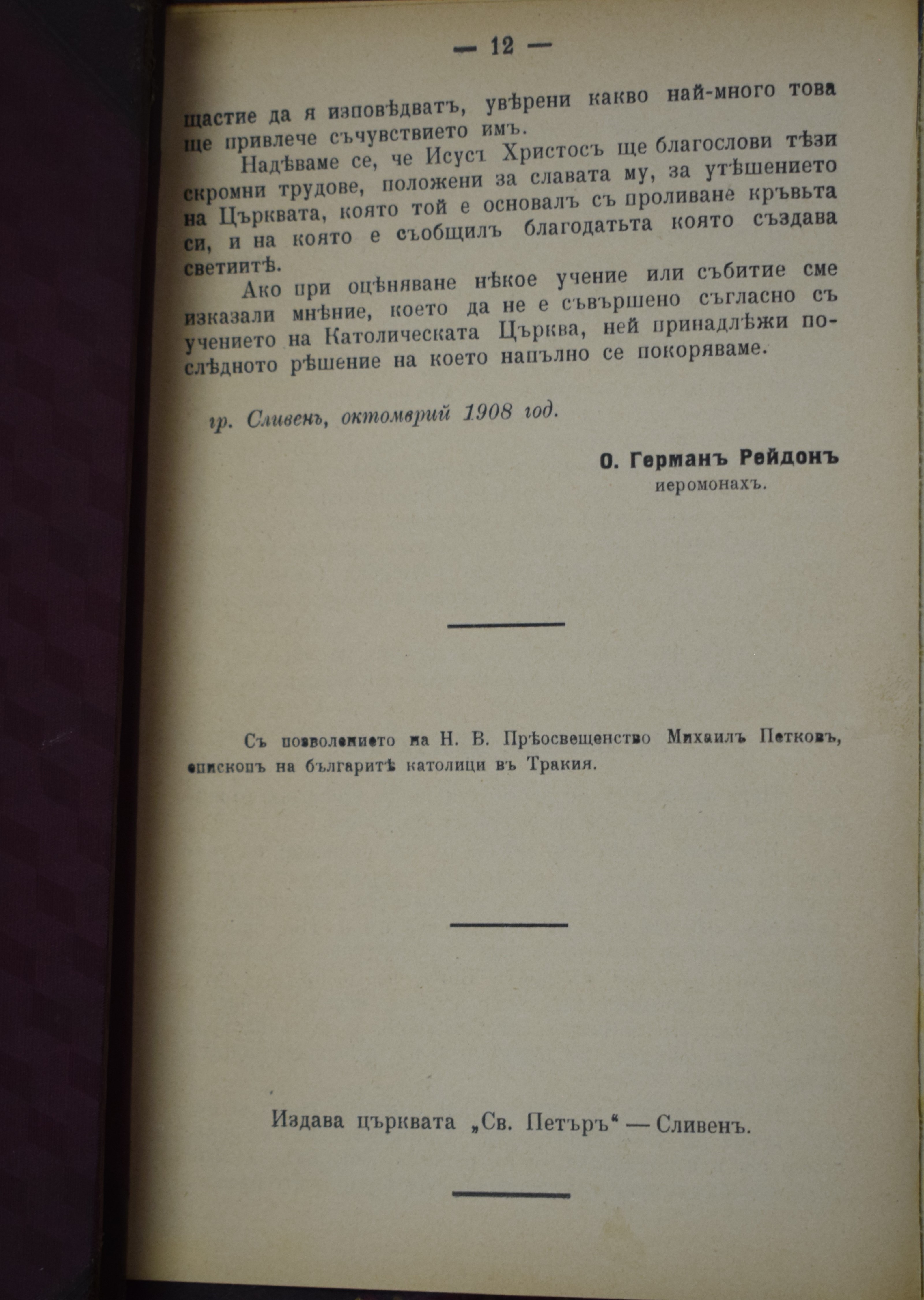 Житието на светиите / О. Герман Рейдон, йеромонах. - Сливен : Църква "Св. Петър" - Сливен, [1910]. - 12; 18 см, 4°