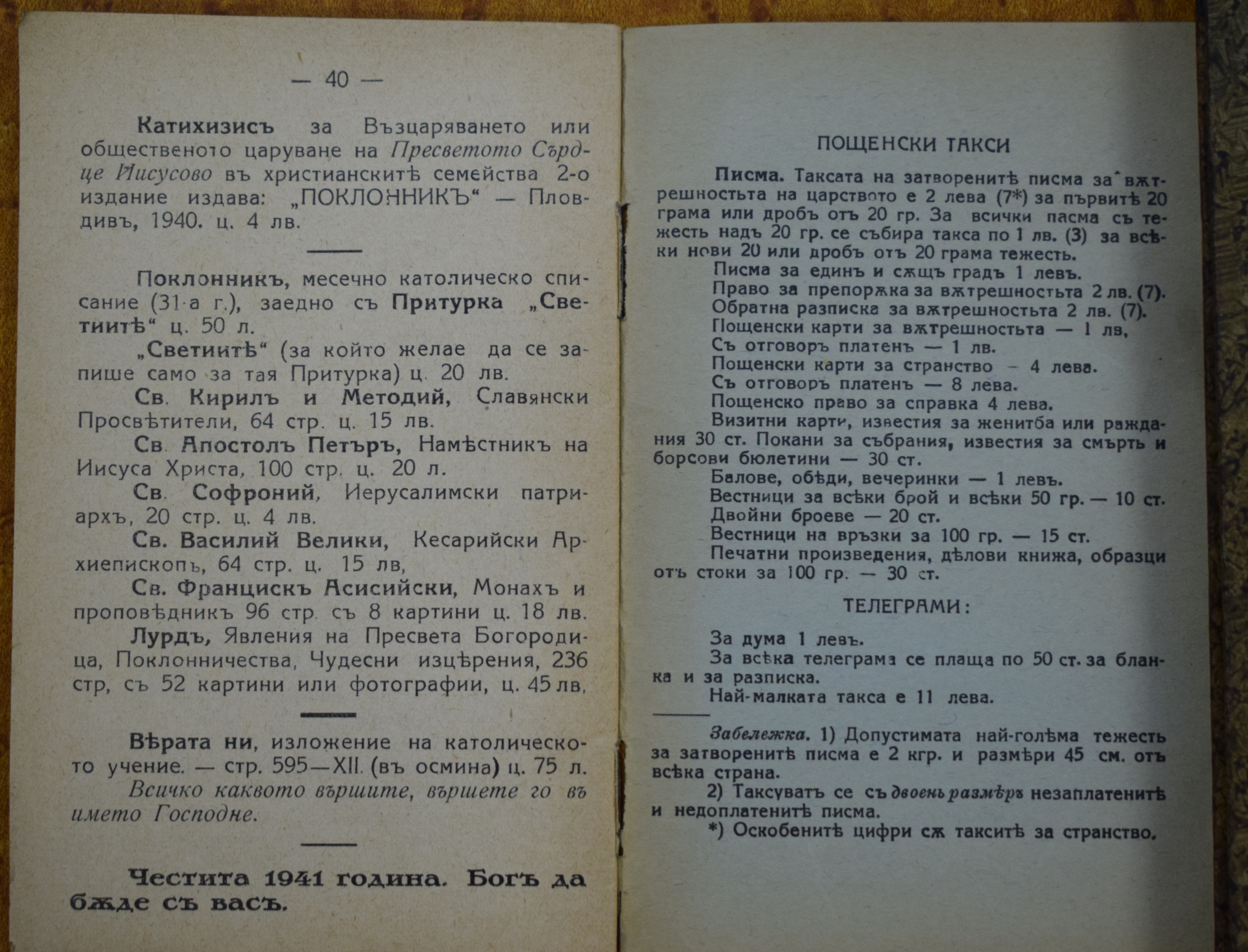 Малък календар на "Поклонник" : За 1941 г. : 4. - Пловдив : Поклонник, 1940 (Търговска печатница). - 40: с ил.; 15 см, 8°