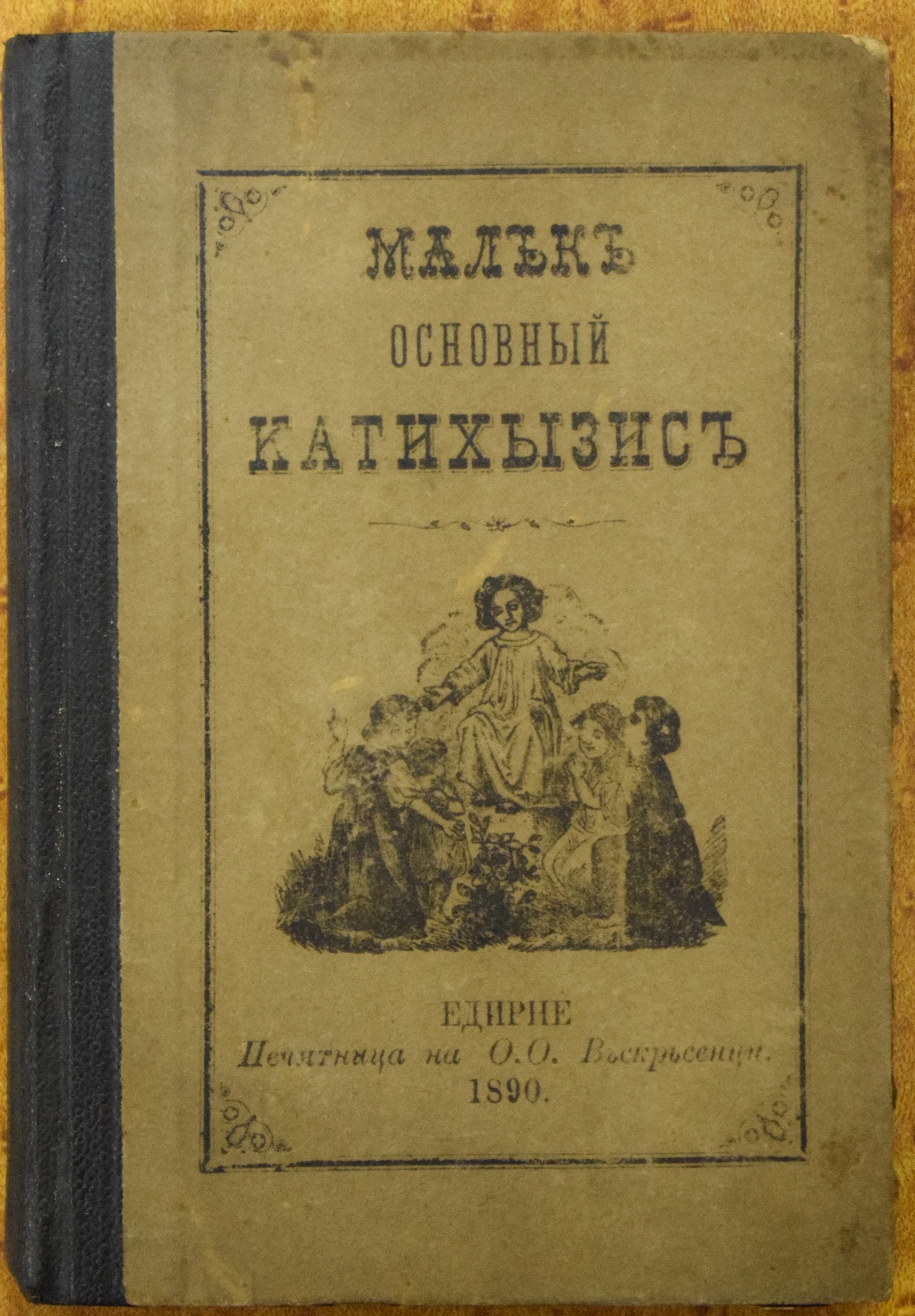 Заглавие на предната корица: Малък основен катихизис. На задната корица: Напечата се с позволението на Одринското народно просвещение (на български и османотурски език). Липсва описание в БК (1878-1944).