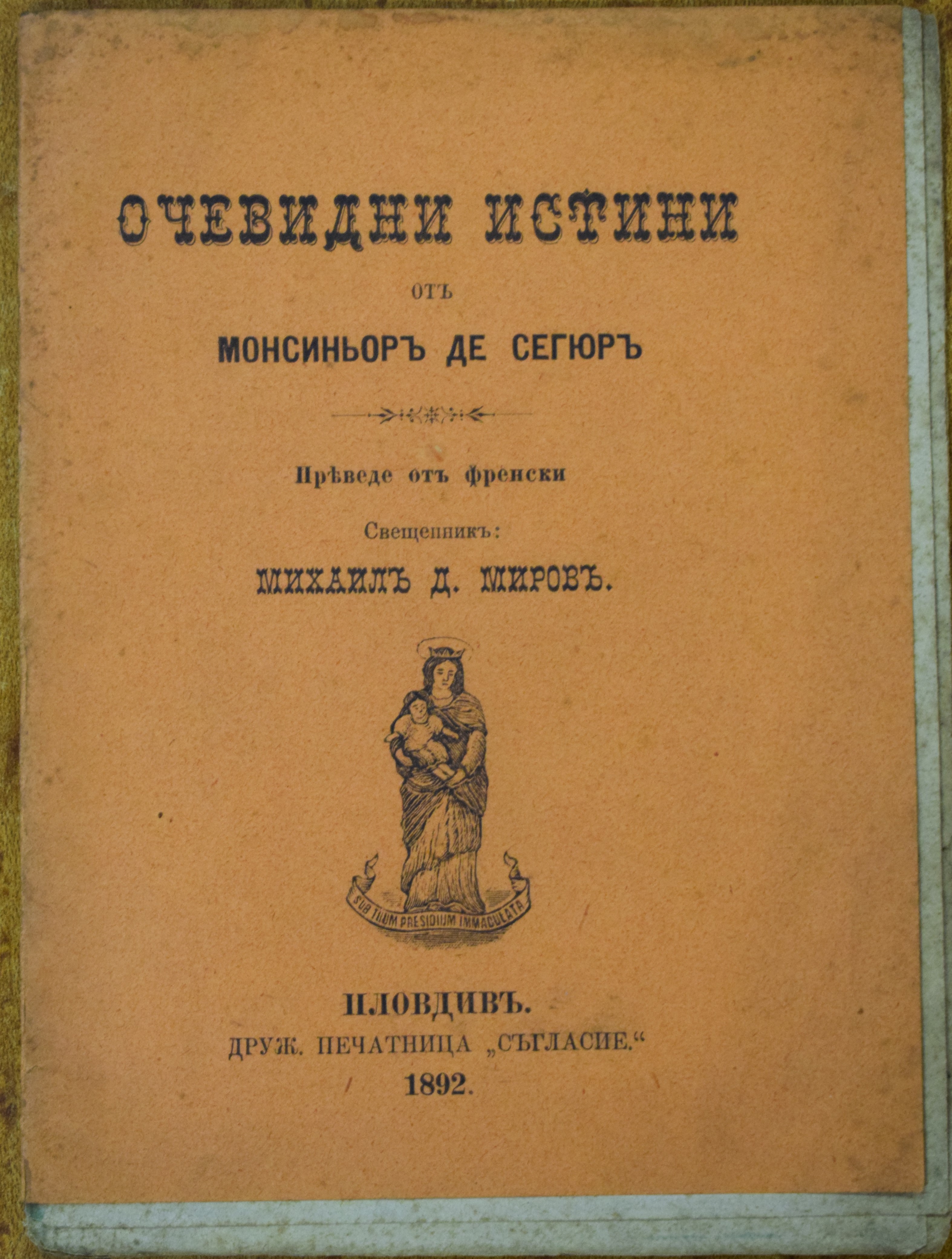 Очевидни истини / от Монсеньор де Сегюр; преведе от френски Михаил Д. Миров. - Пловдив, 1892 (Дружествена печатница "Съгласие"). - 34 см; 14 см, 8°