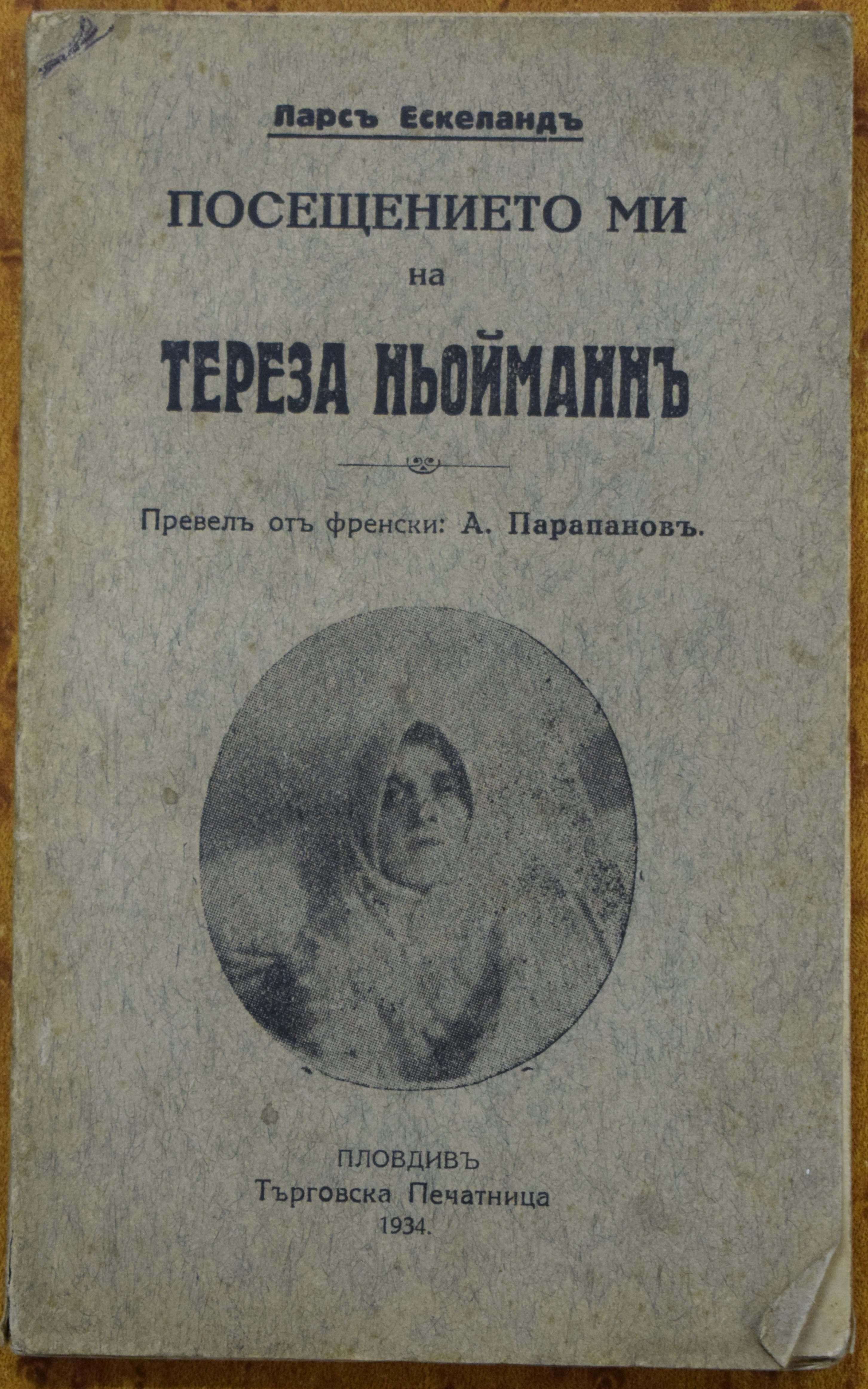 Посещението ни на Тереза Ньоймания / Ларс Екселанд; Превел от френски А. Парапанов. - Пловдив, 1934 (Търговска печатница). - 100 с.: с ил.; 18 см, 8°. - (Библиотека Дружество "Вечен покой").