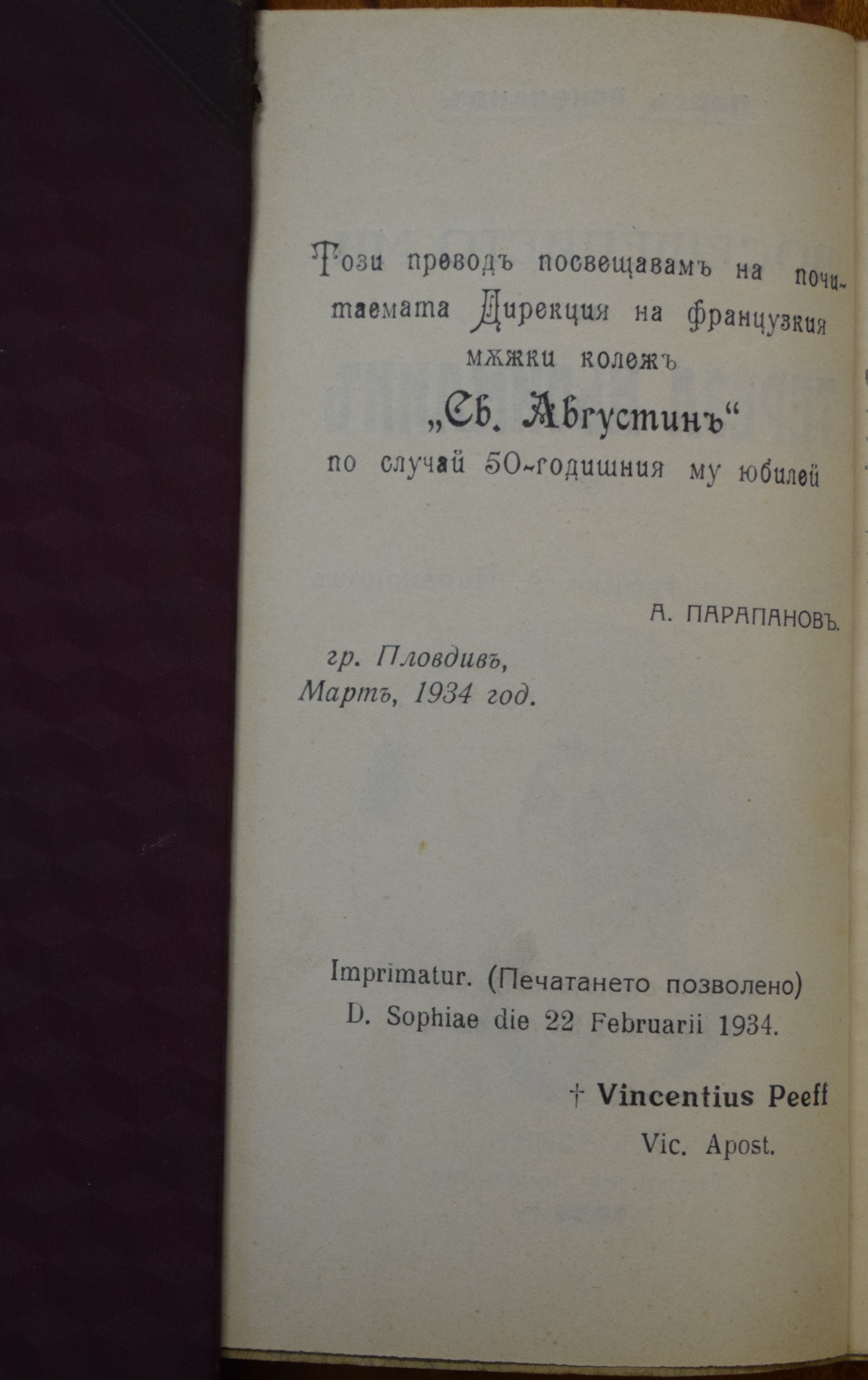 Несигниран екземпляр БОУВГП - Библиотека на Отците Успенци, храм Възнесение Господно, Пловдив