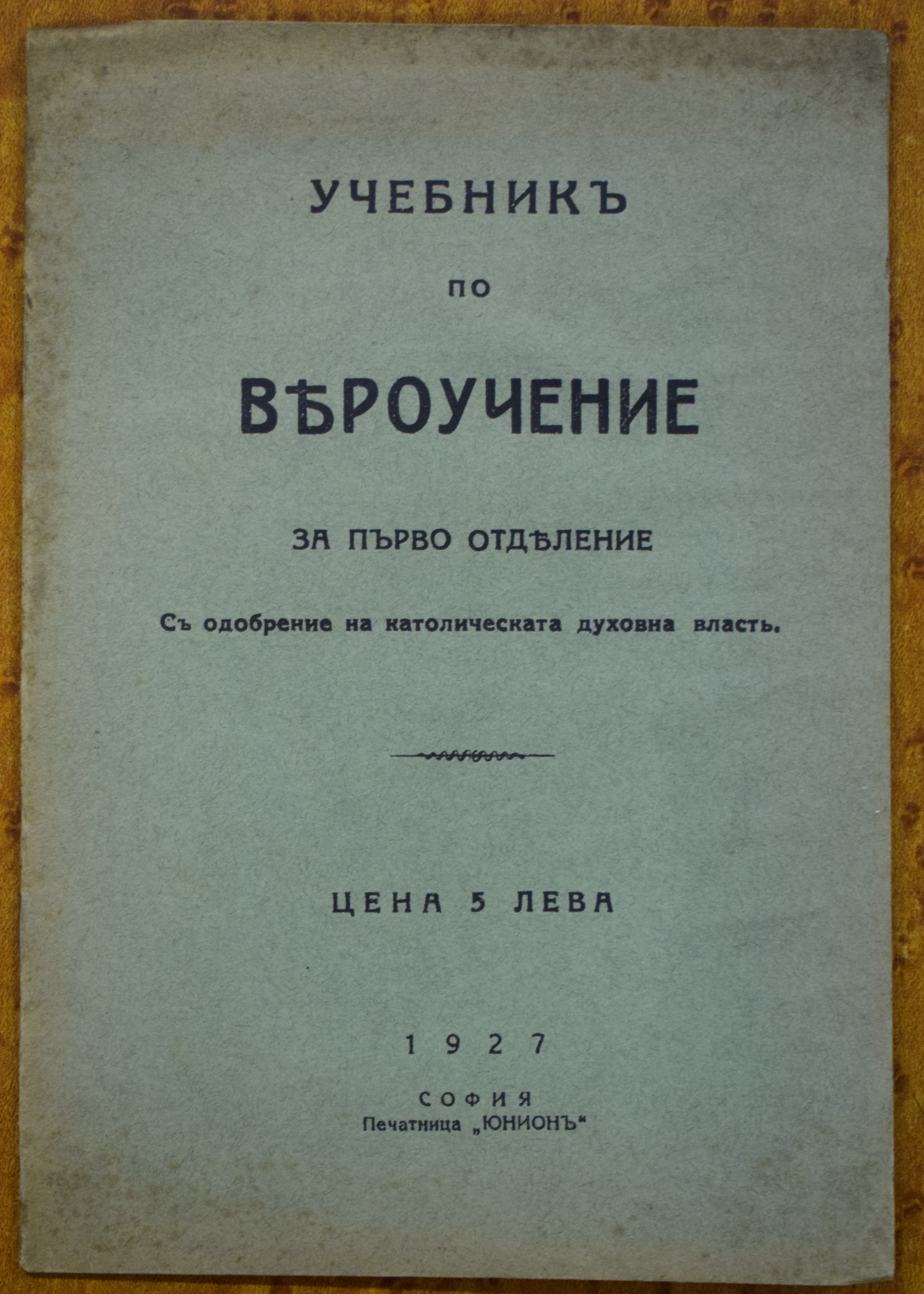 Учебник по вероучение за първо отделение : С одобрение на католическата духовна власт. - Пловдив : Комитет "Добър печат", 1927. - 23: с ил.; 22 см