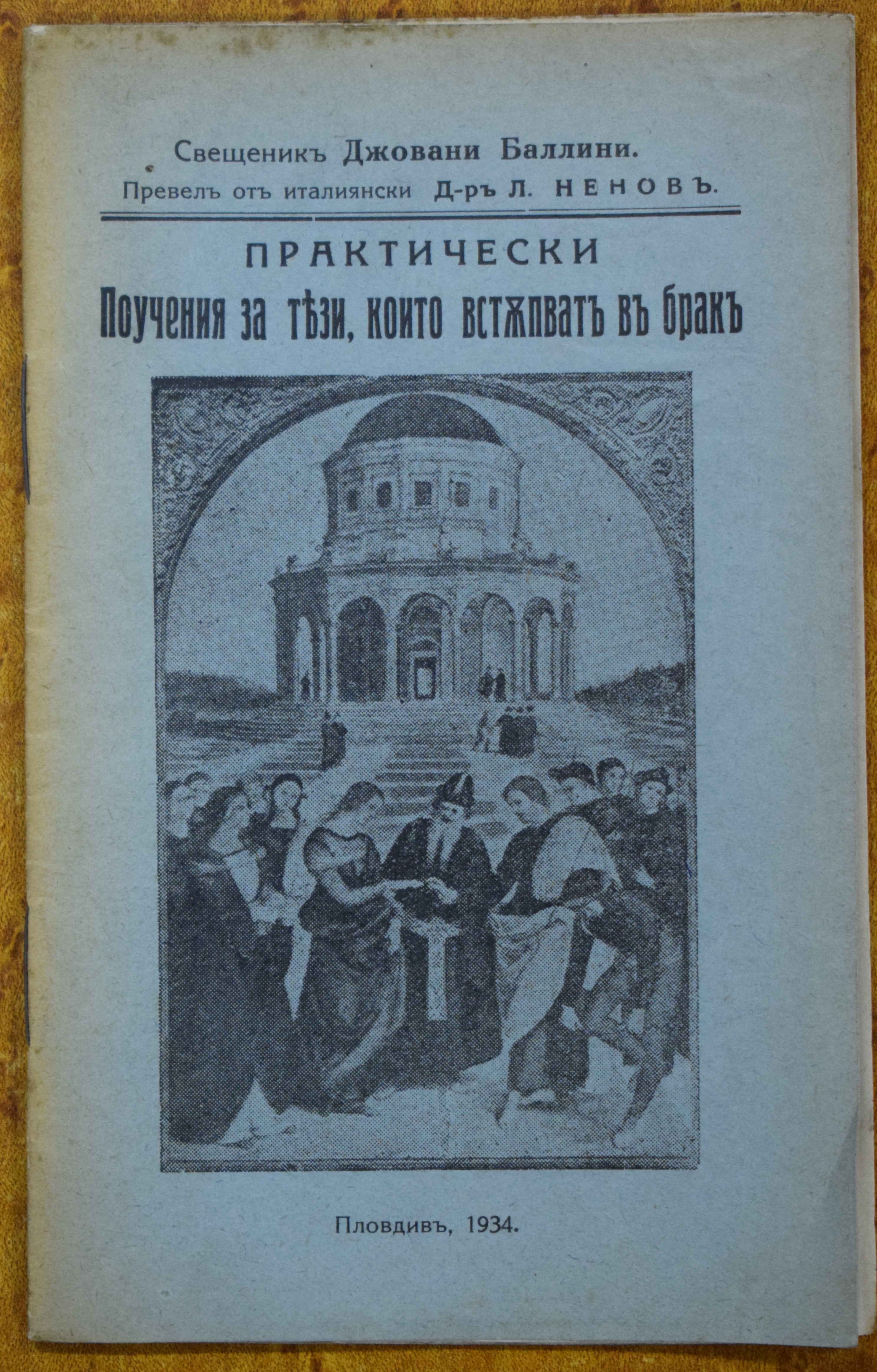 Практическо поучение на тези, които встъпват в брак / Свещенник Джовани Баллини; превел от италиянски Д-р А. Ненов. - Пловдив : [Поклонник], 1934. - 24; 15 см, 8°
