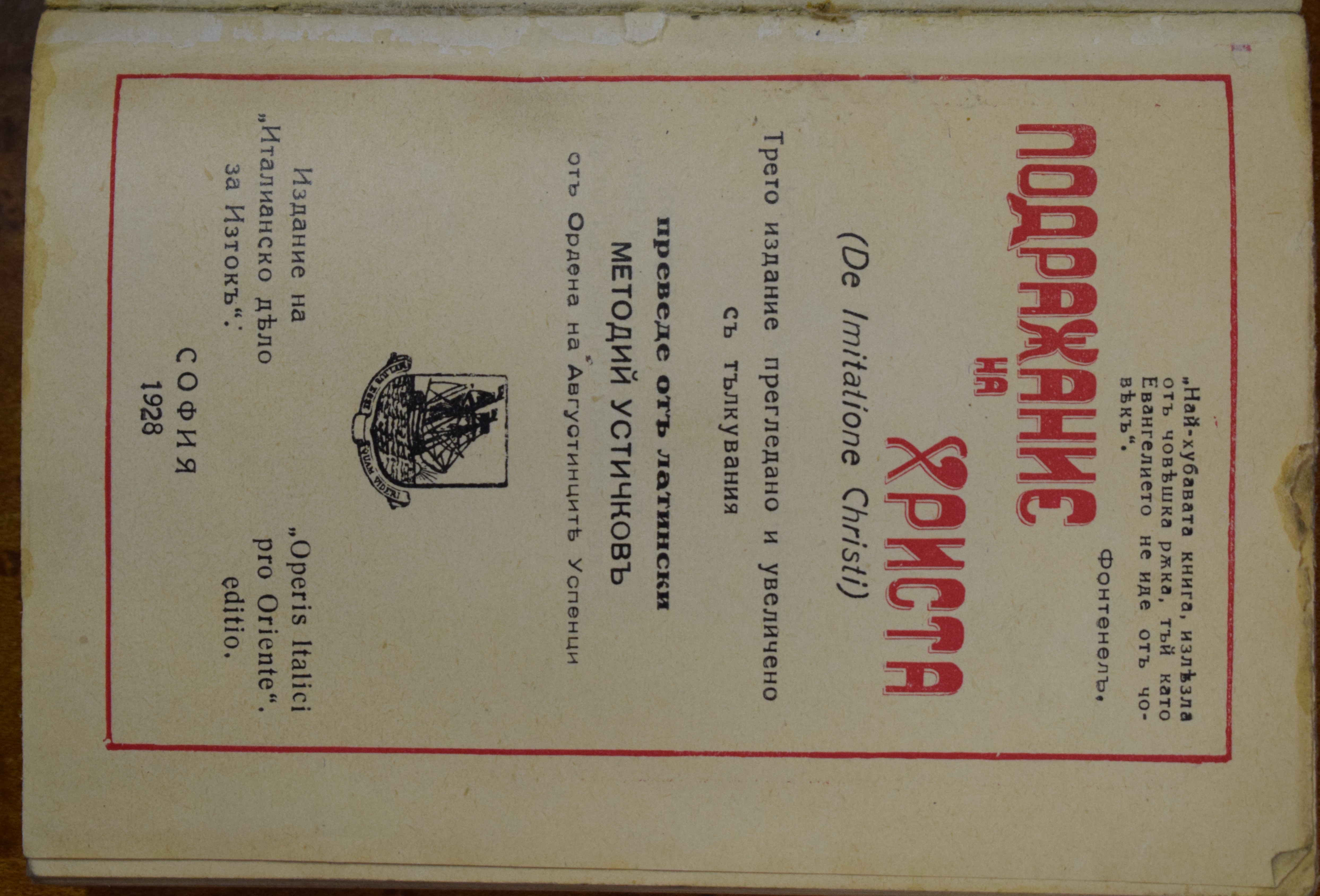Тома Кемпийски; преведе от латински Методий Устичков
