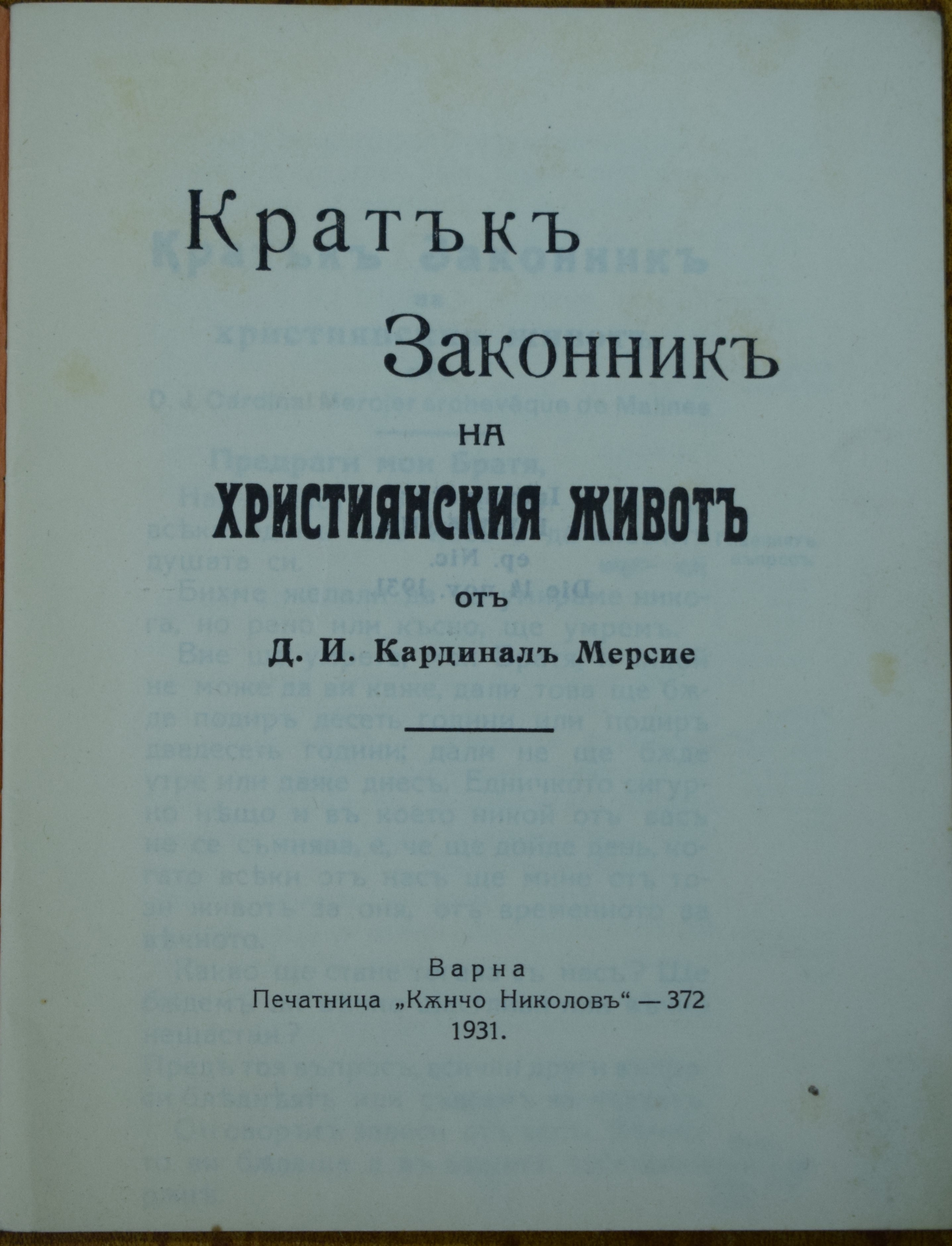 от Д. И. Кардинал Мерсие; превел от френски О. Херман Пасионист