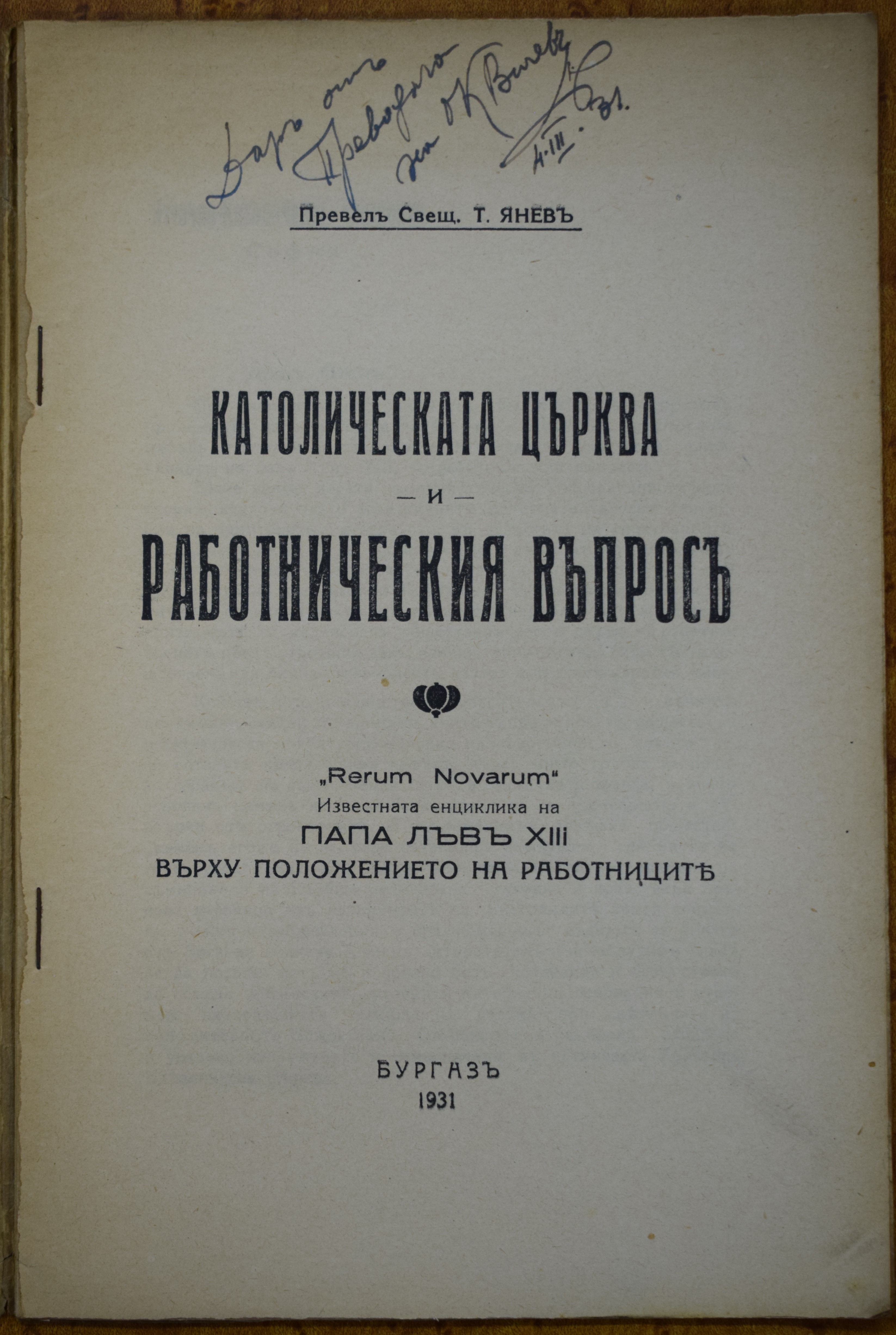 папа Лъв XIII, превел свещ. Т. Янев