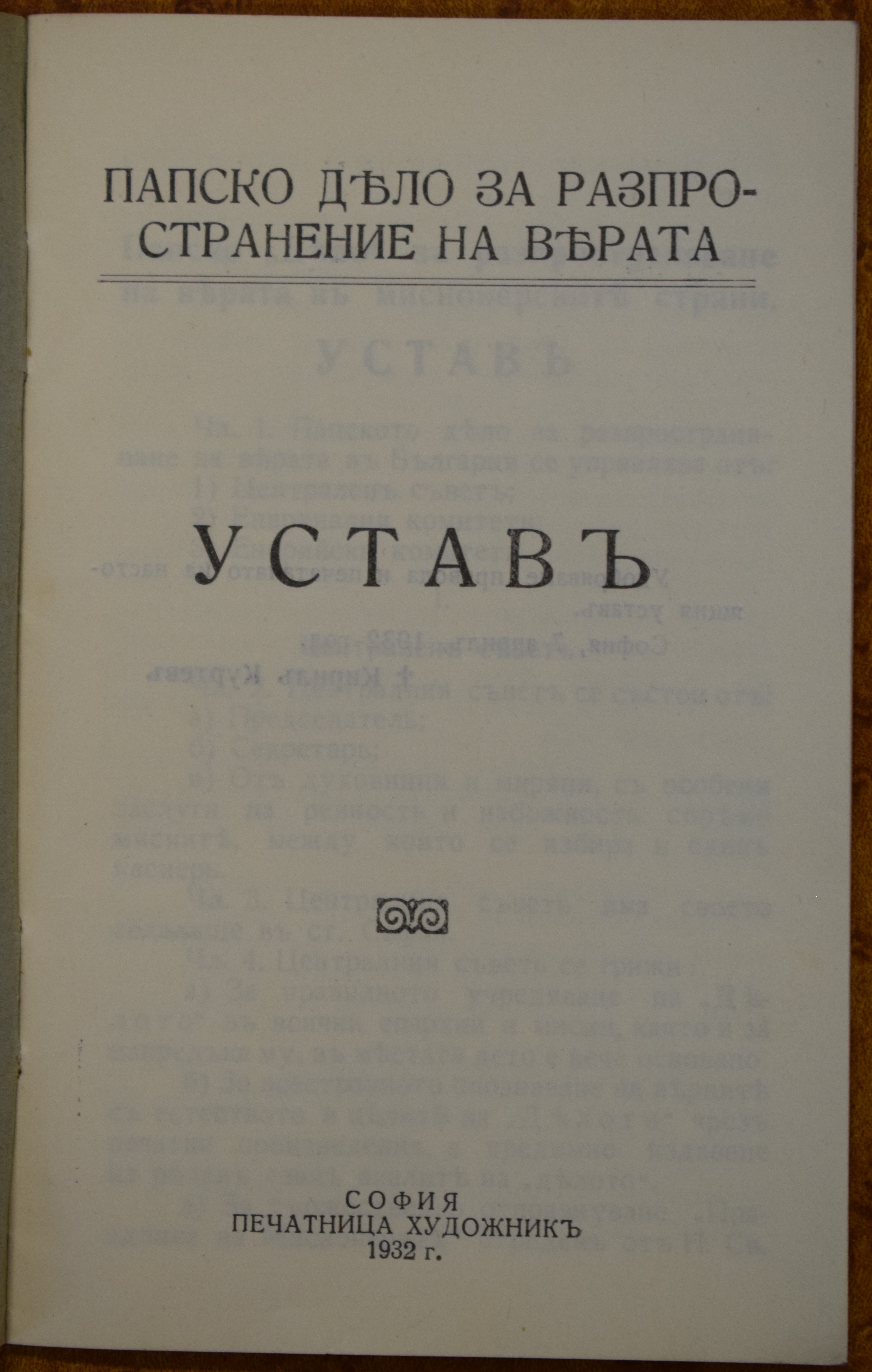 Папско дело за разпространяване на вярата в България. София. Устав