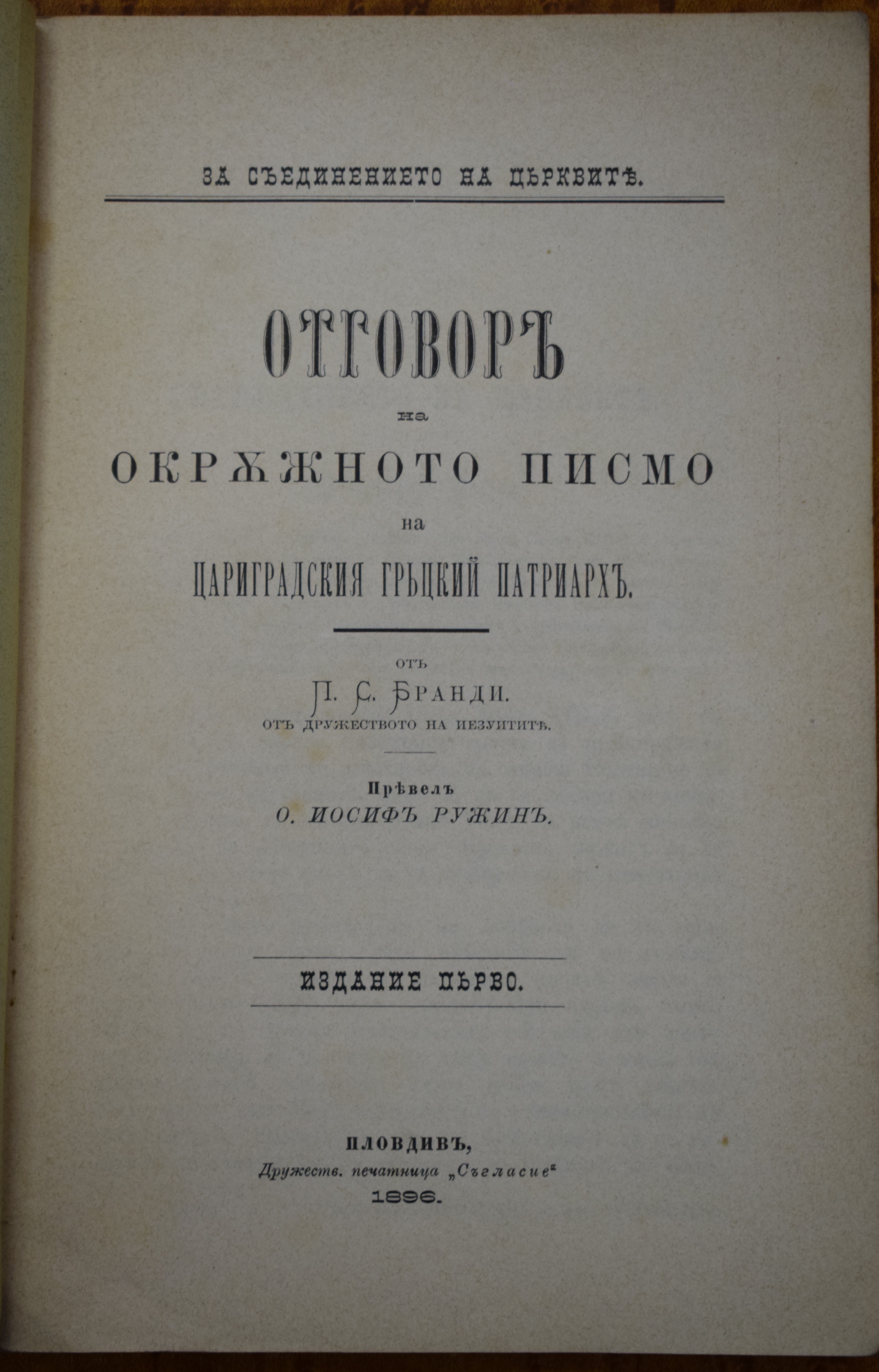П. С. Бранди от дружеството на Йезуитите; Превел отец Йосиф Ружин