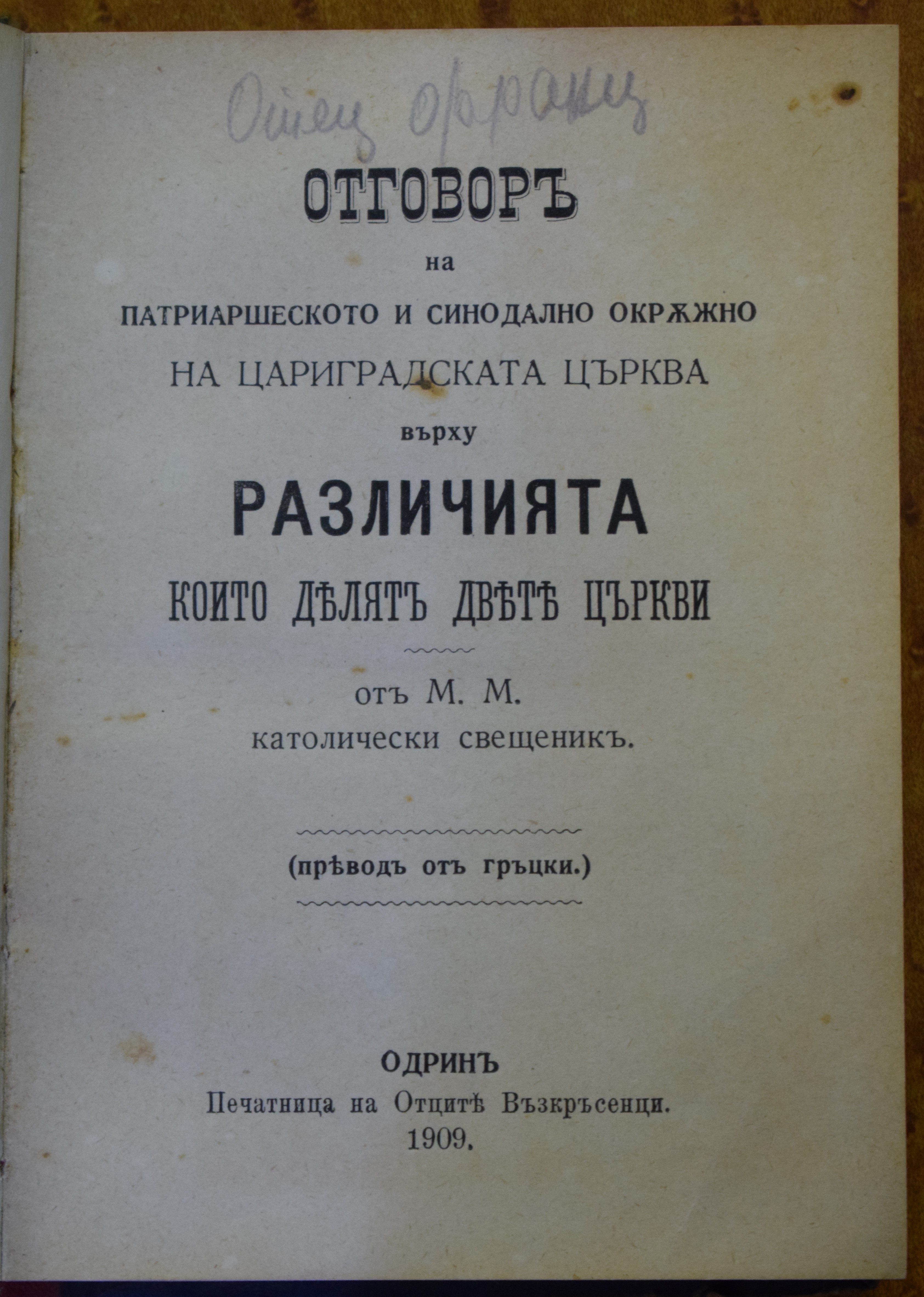 от М. М. католически свещеник (превод от гръцки)